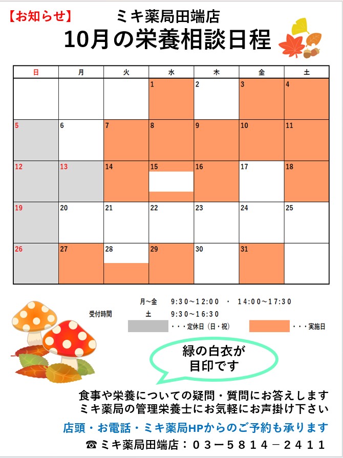 ミキ薬局各店の栄養相談と共に、どうぞよろしくお願いします