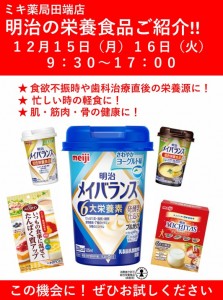 に向けて、明治メイバランスminiカップを中心に明治の栄養食品各種のご紹介をいたします。